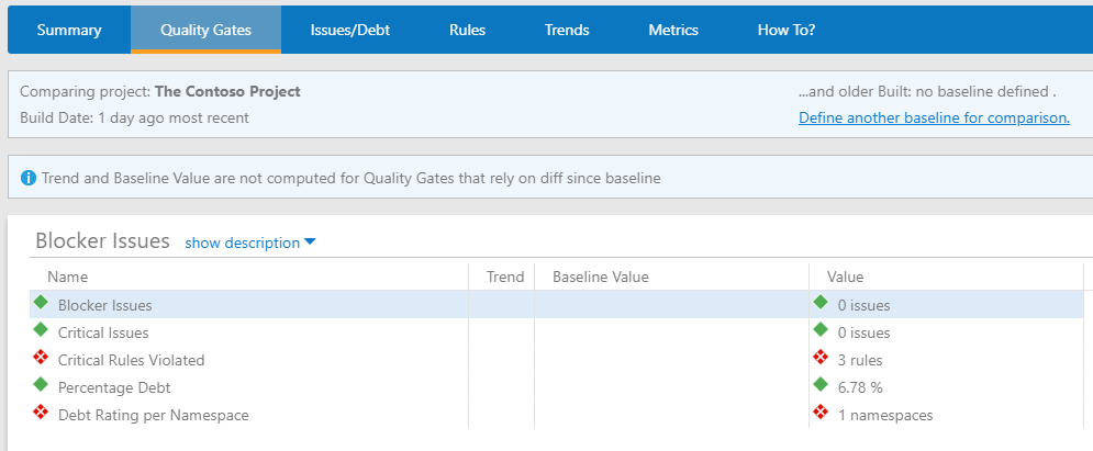 - You can choose to stop the build when at least one quality gate fails.
